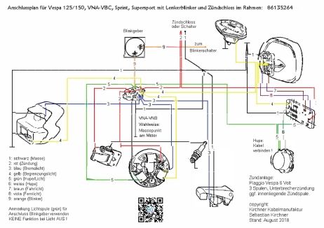 Anschlussplan für Vespa 125/ 1 50, VNA-VBC, Sprint, Supersport