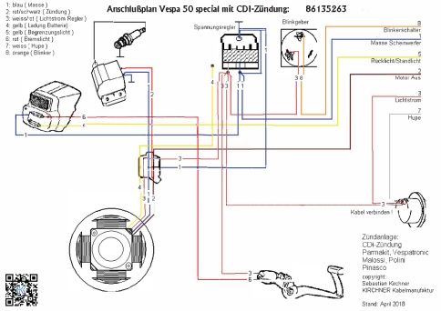 Anschlußplan Vespa 50 special mit CDI-Zündung