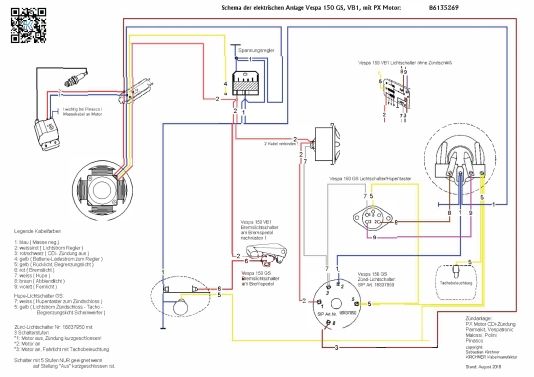Schema der elektrischen Anlage Vespa 150 GS1 VB11 mit PX Motor